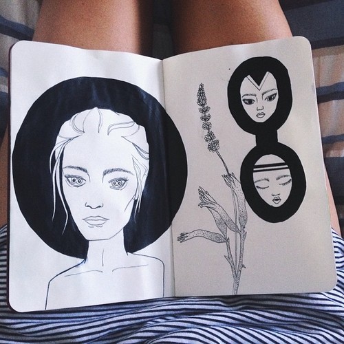 Definitely my own mind and it’s unorganised thoughts, but also magazines, models and the personalities of people I know. I love trying to draw a person to depict their personality traits or certain aspects about them such as mystery, mischievousness or sadness.